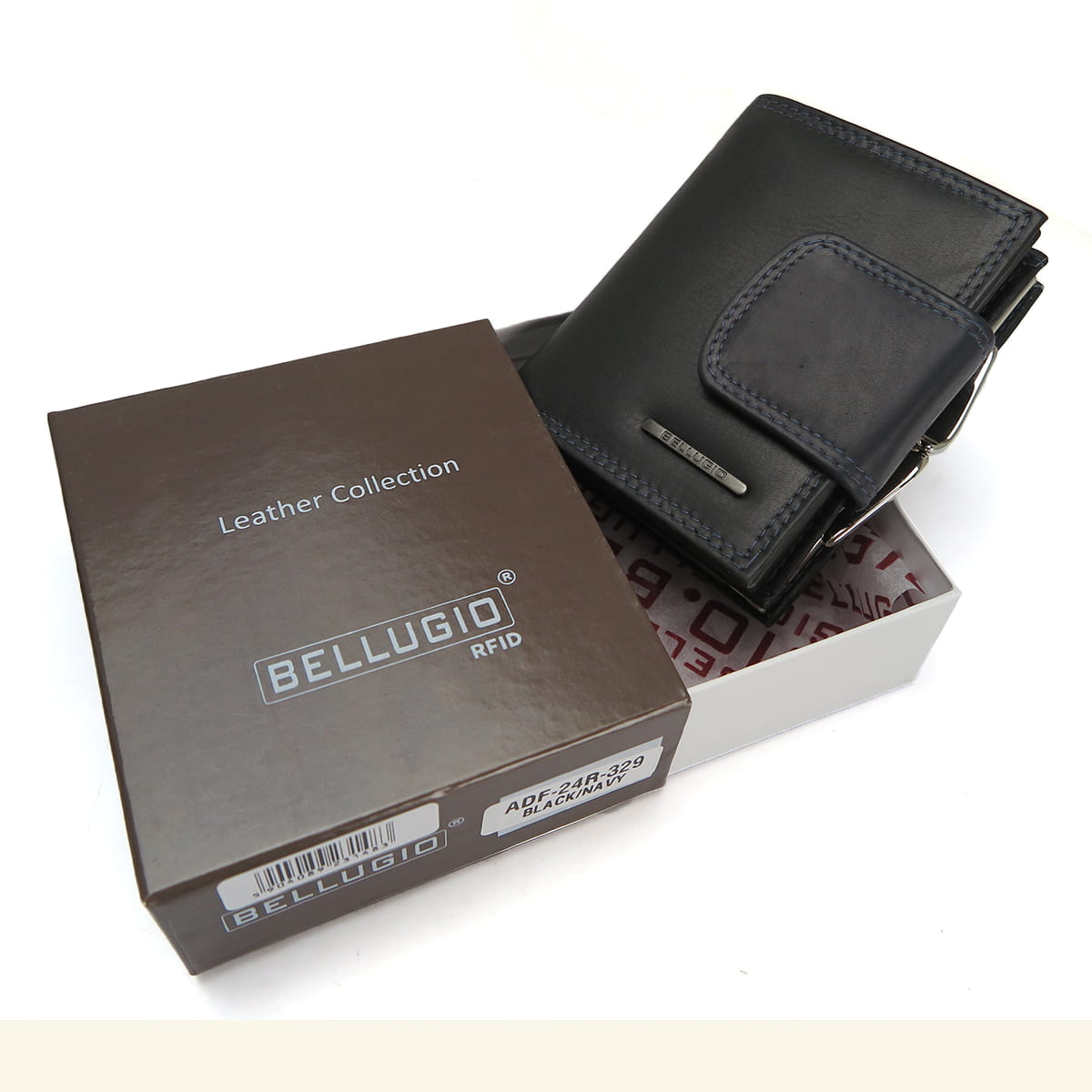 DAMSKI PORTFEL Z MIĘKKIEJ SKÓRY ADF-24R-329 - czarno-granatowy
