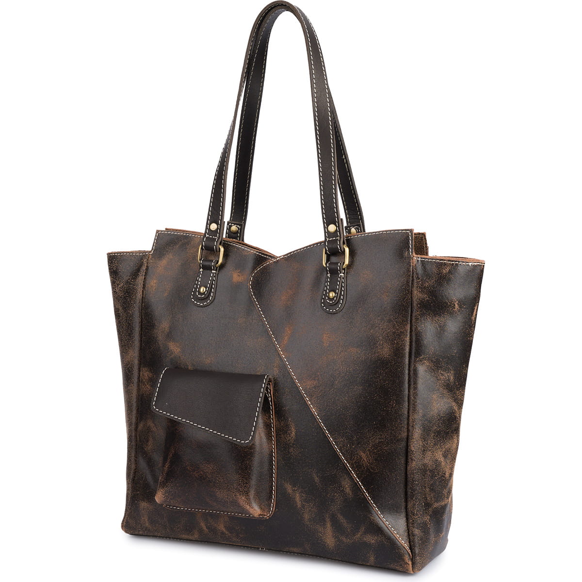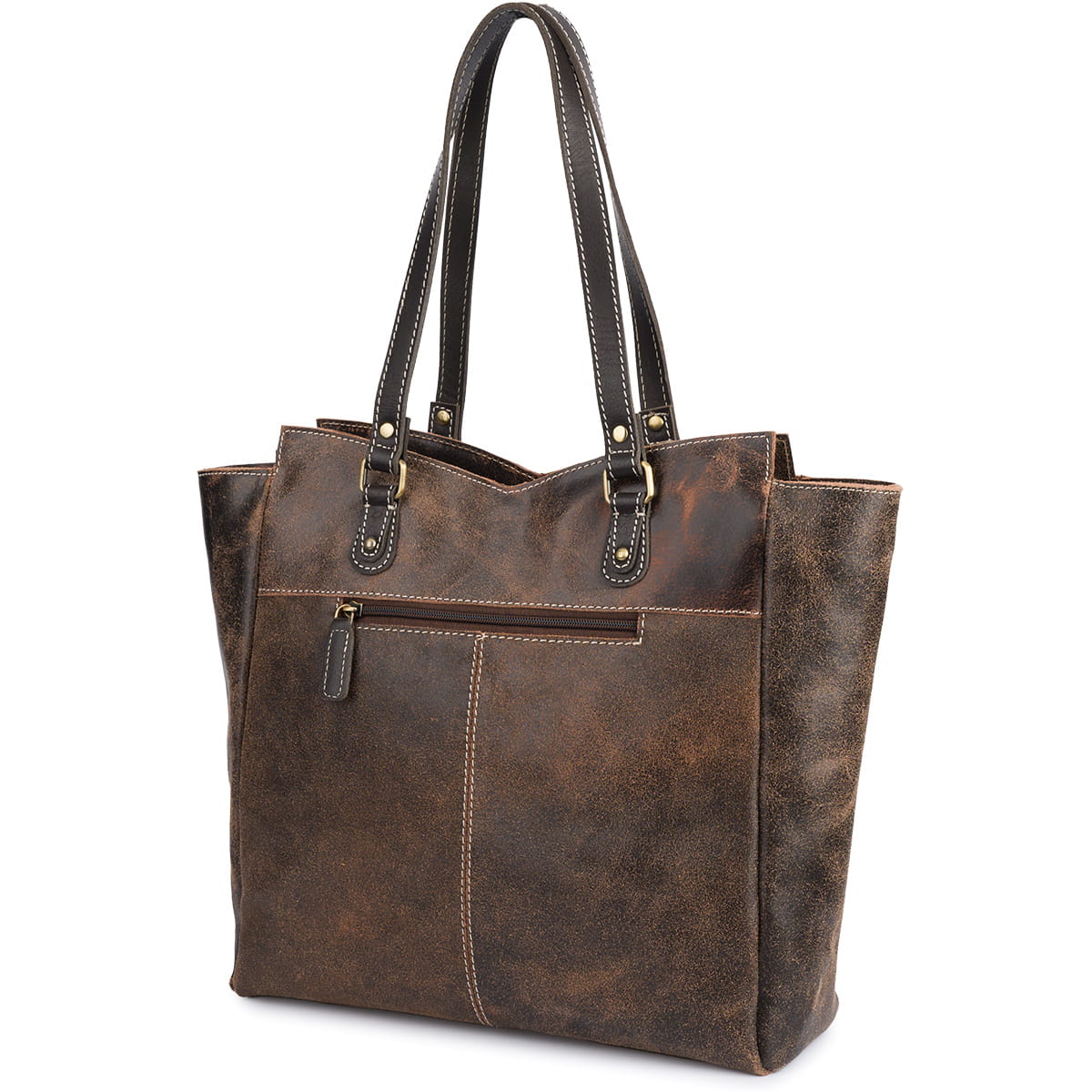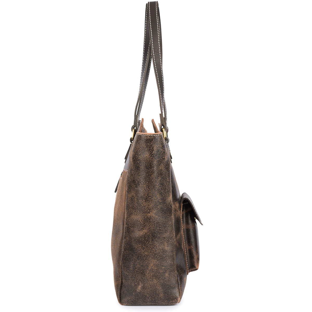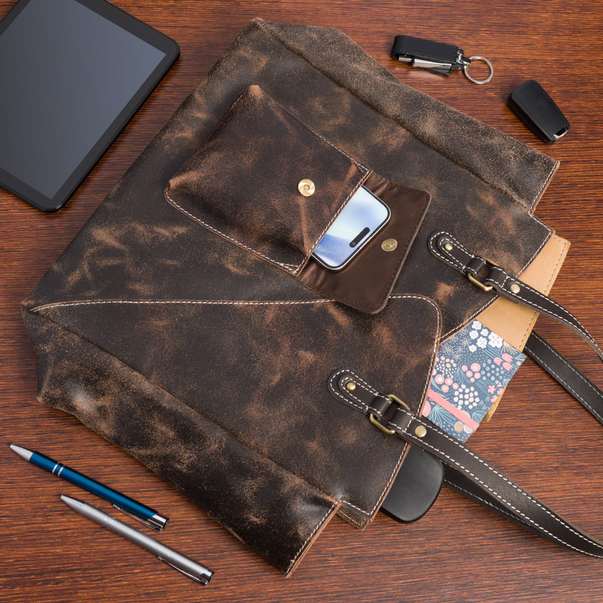 Duża torebka damska AMBRA to połączenie elegancji i surowego charakteru inspirowanego stylem Dzikiego Zachodu. Wykonana z najwyższej jakości skóry naturalnej, zachwyca unikalnym wykończeniem – delikatne przetarcia nadają jej niepowtarzalny wygląd, dzięki czemu każda torebka jest jedyna w swoim rodzaju.