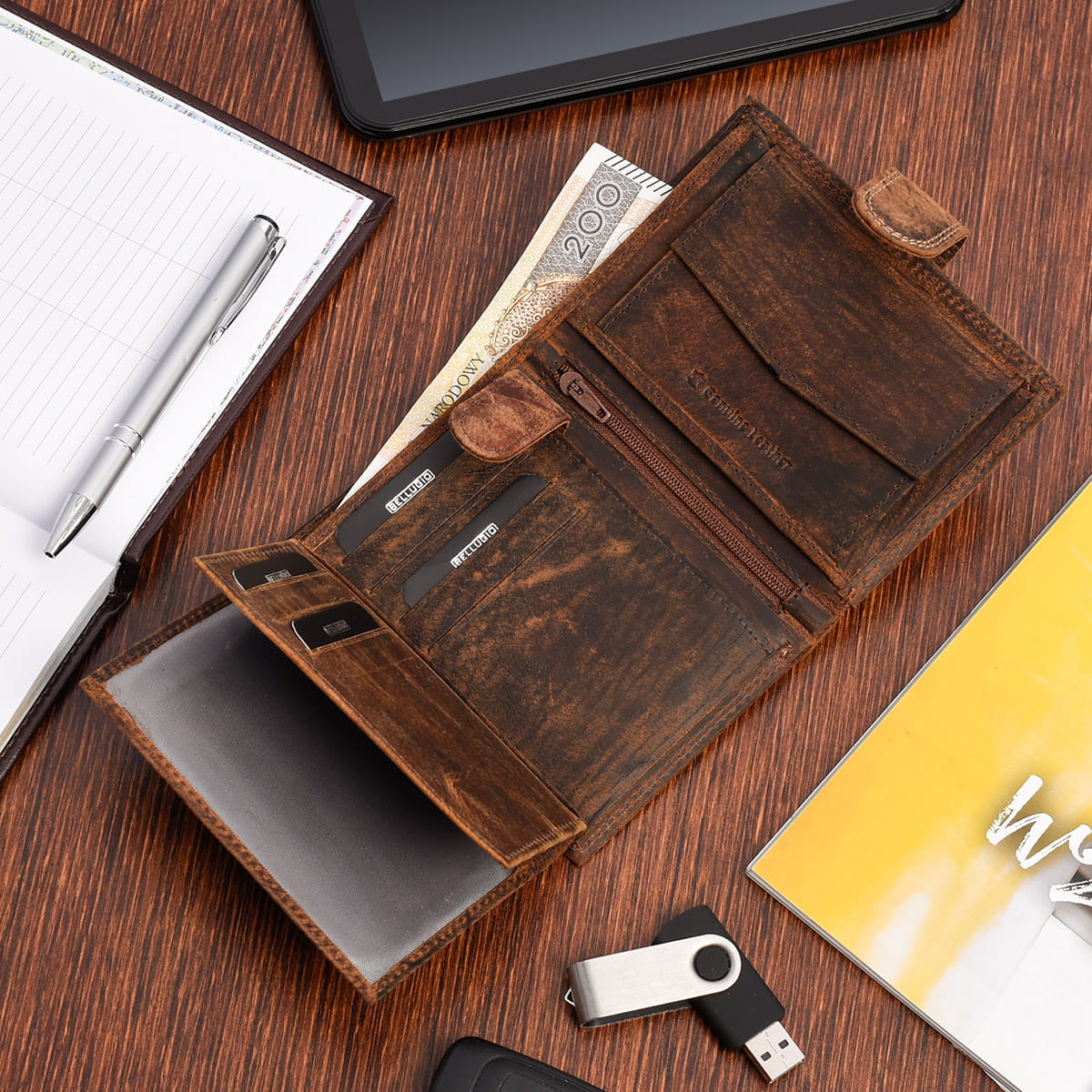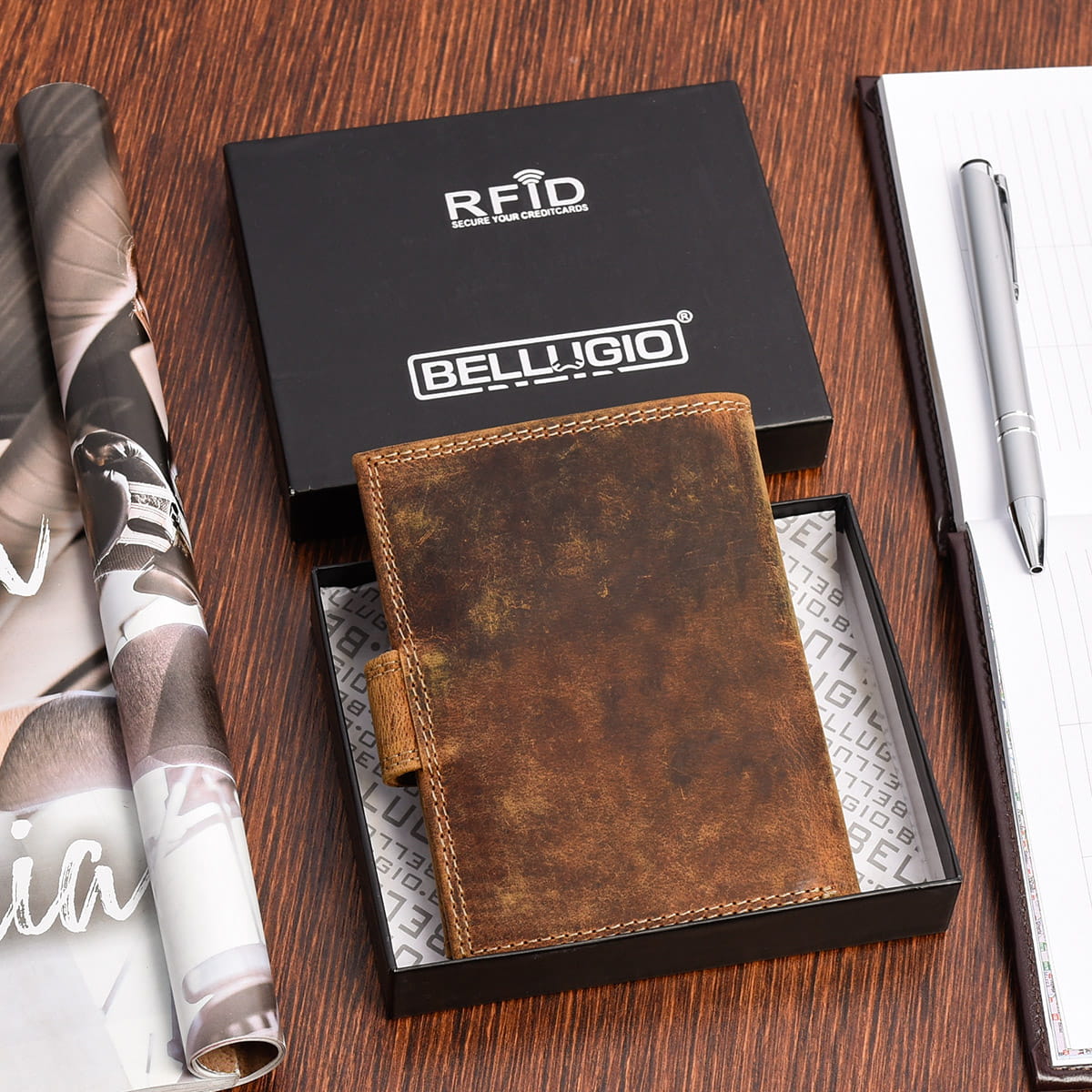 KLASYCZNY PORTFEL BELLUGIO Z RFID EM-114R-123A BRĄZOWY