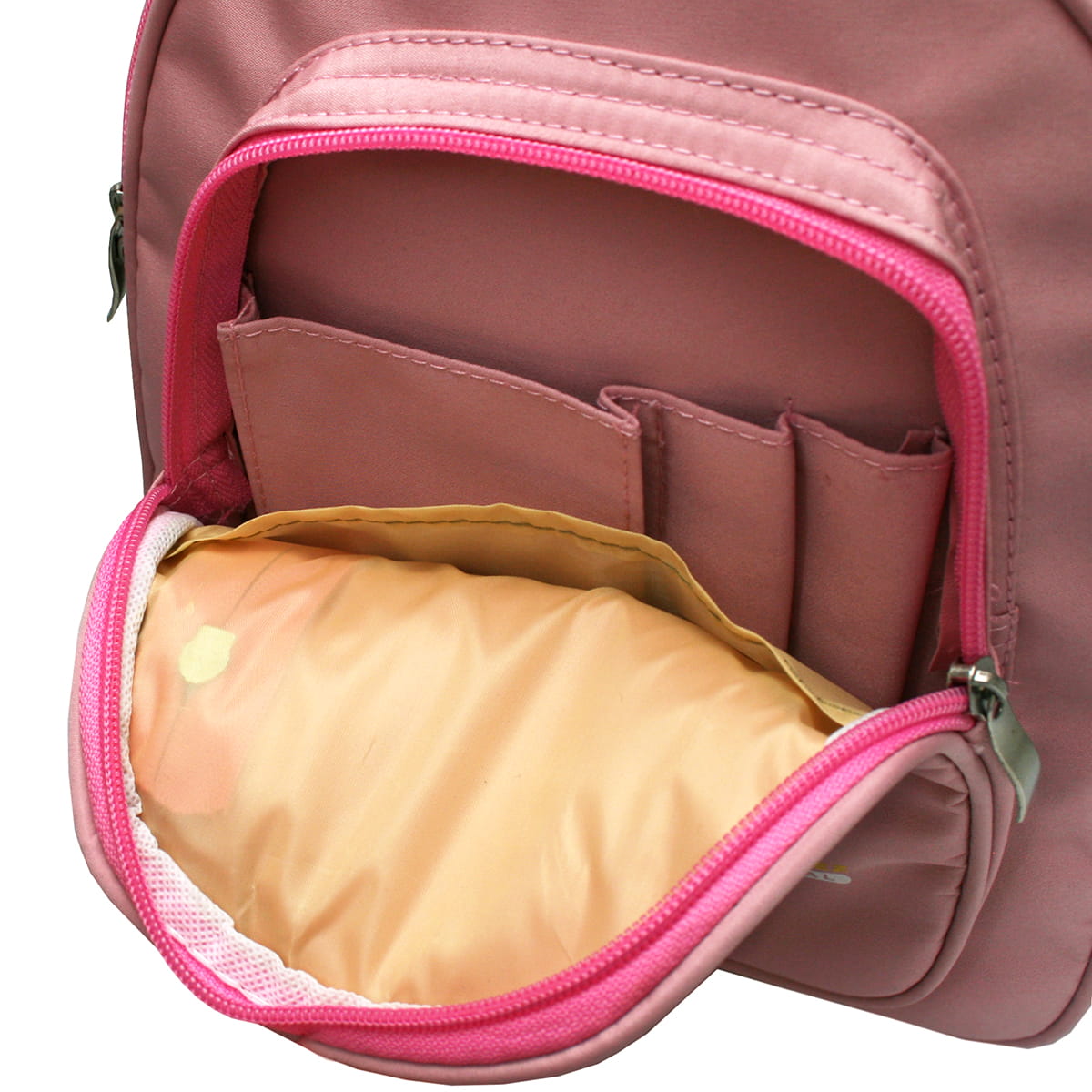 - Kieszenie przednie: większa na suwak z miejscem na telefon, długopis i przegrodą, a także mała kieszonka na drobiazgi.