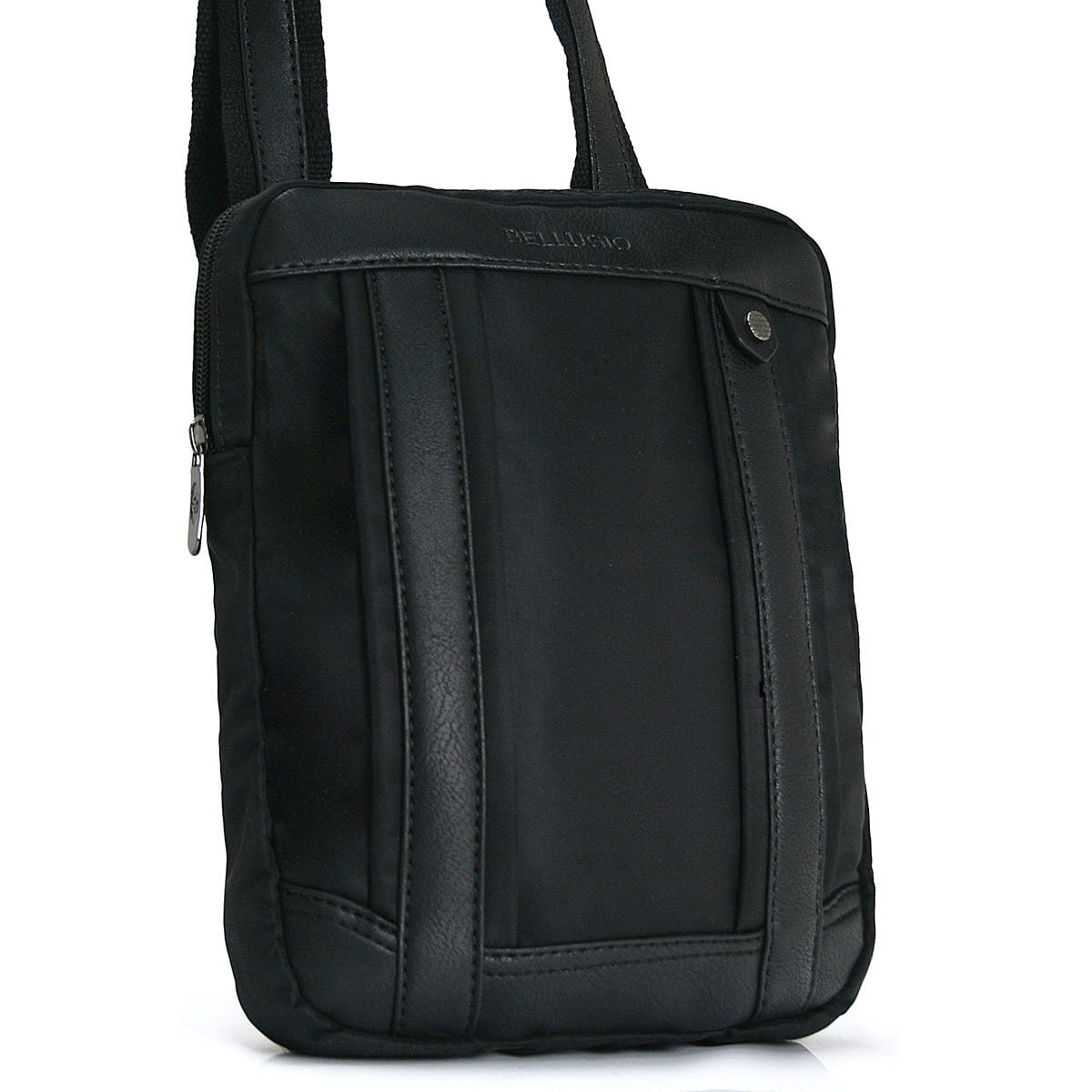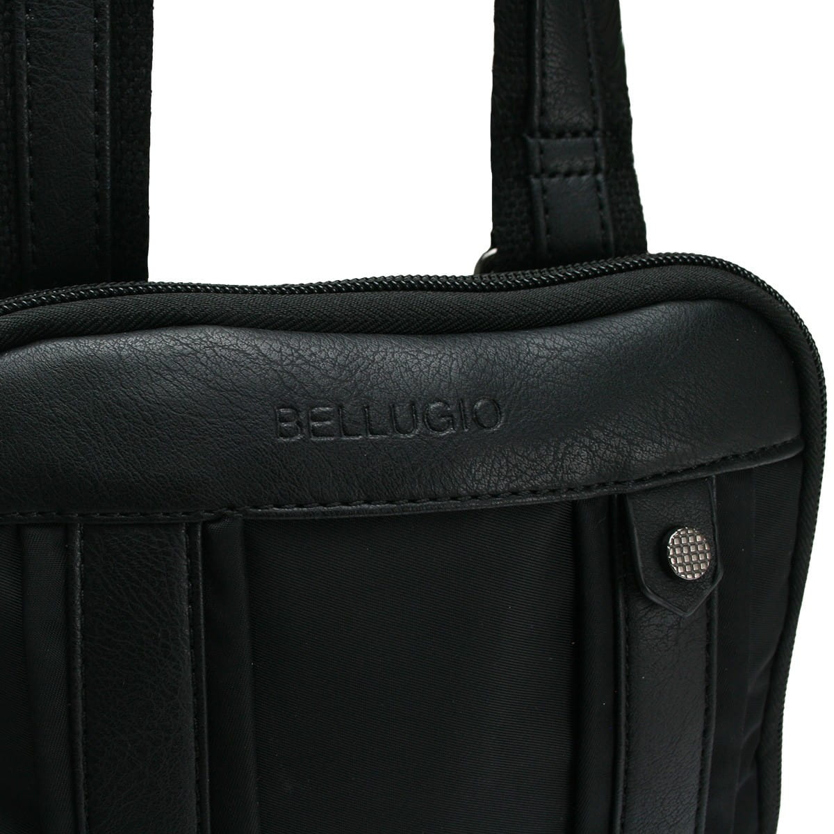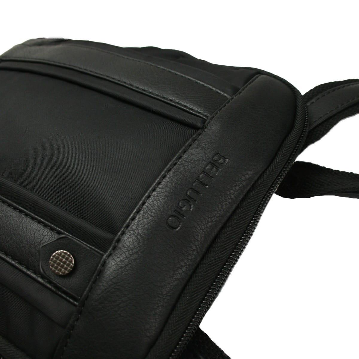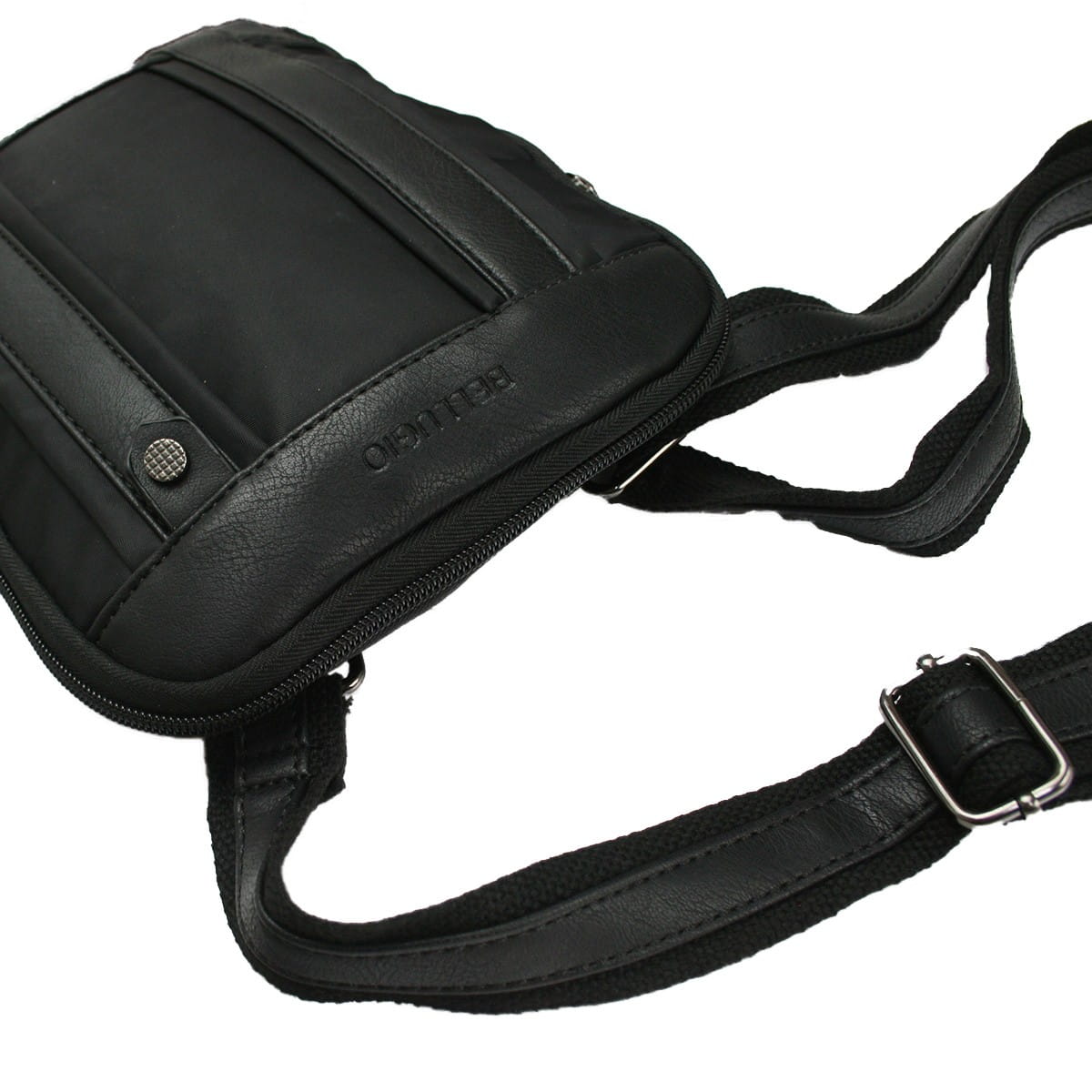 Oryginalne wykończenie ze skóry ekologicznej nadaje saszetce oryginalnego i eleganckiego wyglądu. Na przodzie torby prezentuje się logo Bellugio.
