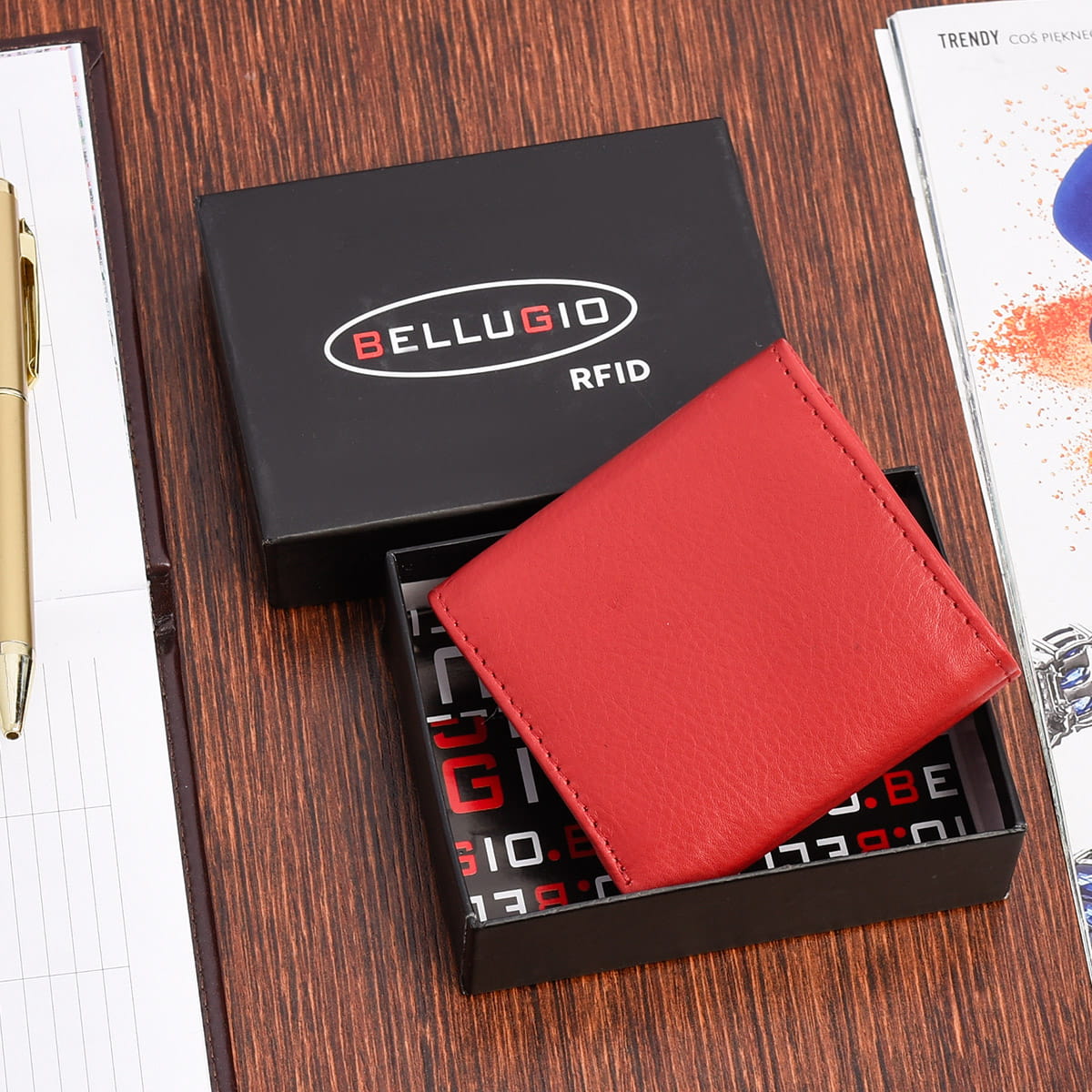 MAŁY PORTFEL BELLUGIO Z RFID AU-133R-409 CZERWONY