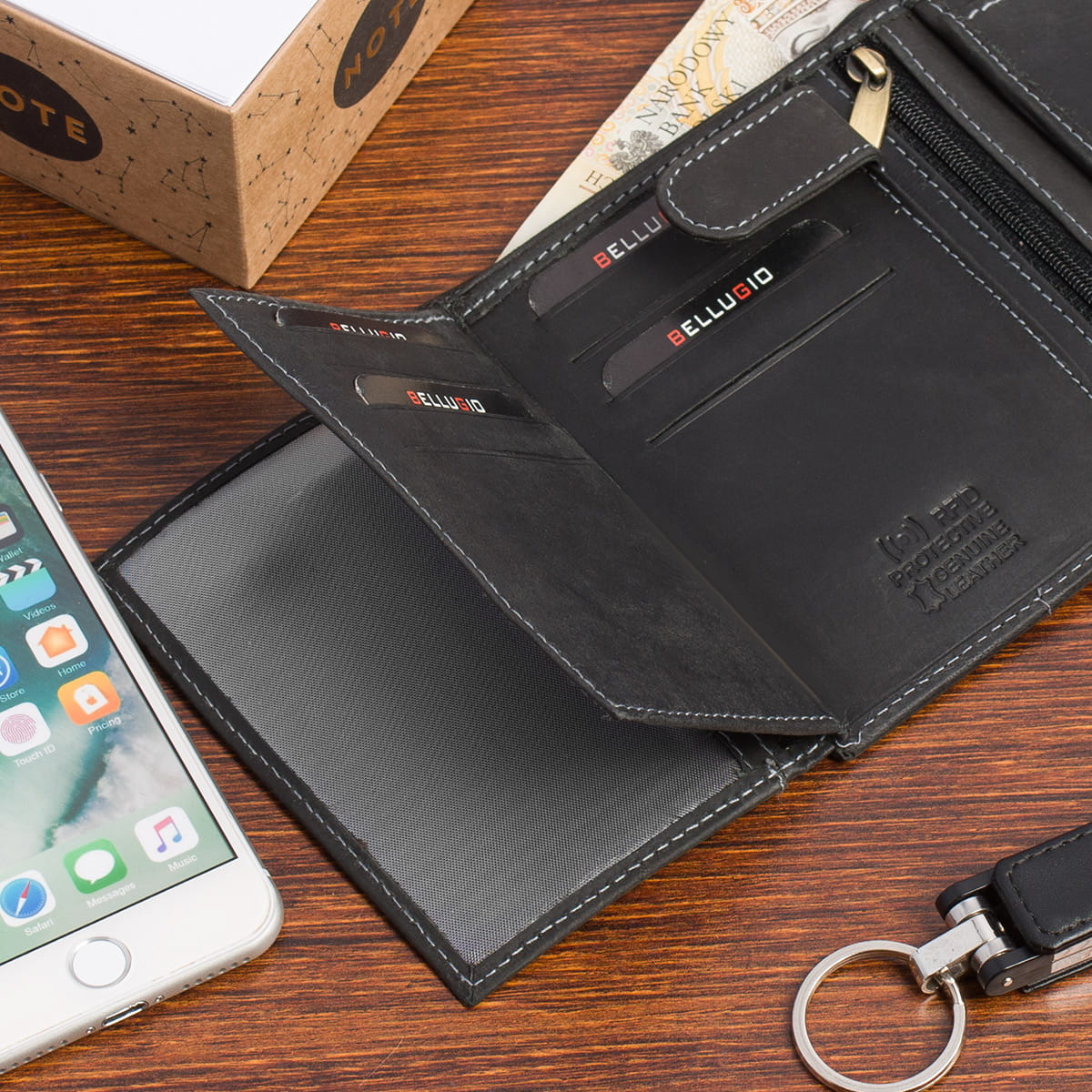 Portfel dostarczany jest w eleganckim pudełku prezentowym, dzięki czemu stanowi idealny pomysł na prezent dla mężczyzny ceniącego klasykę, jakość i bezpieczeństwo.