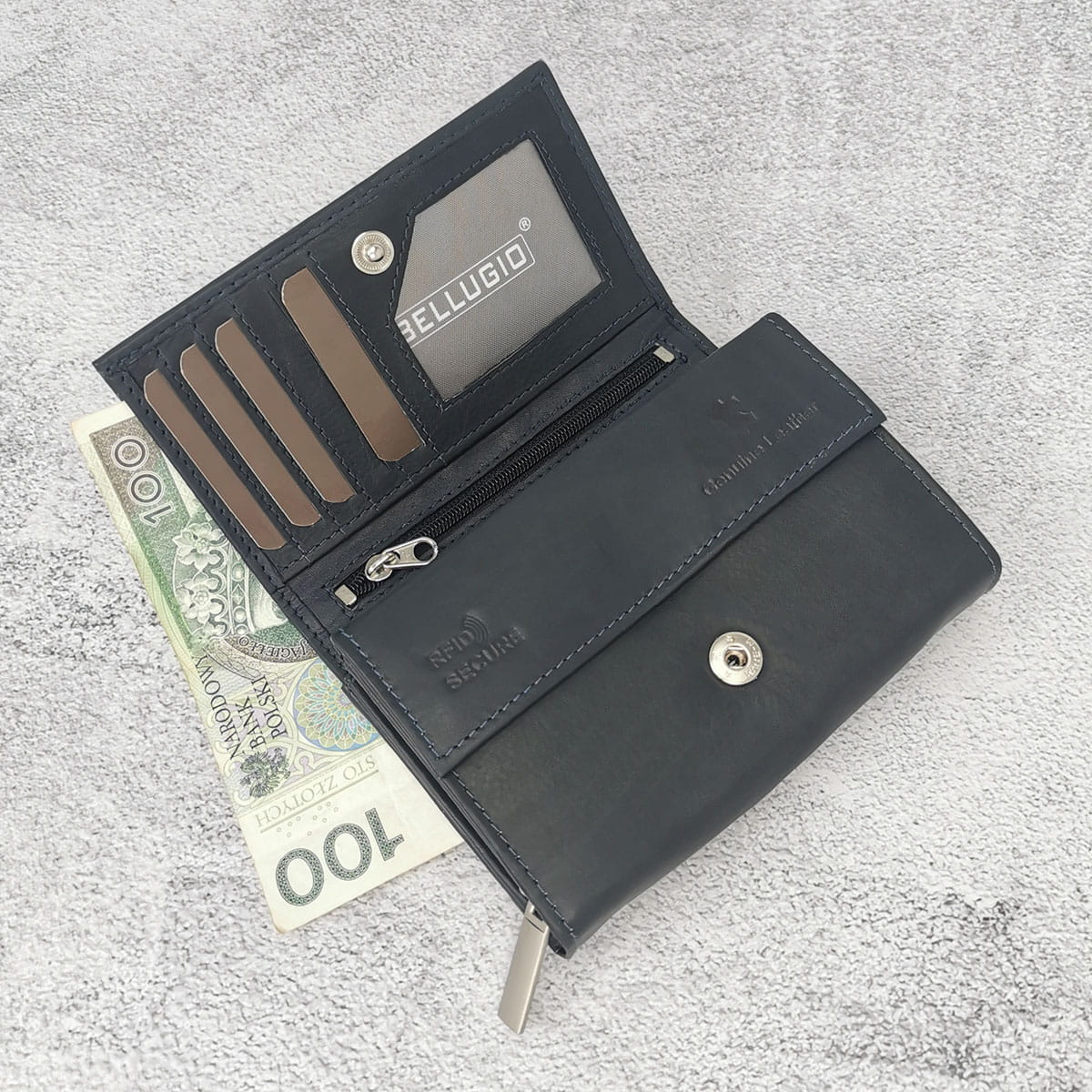 Skórzany portfel damski Bellugio to klasyczny model doskonały dla każdej kobiety lubiącej elegancki styl.
