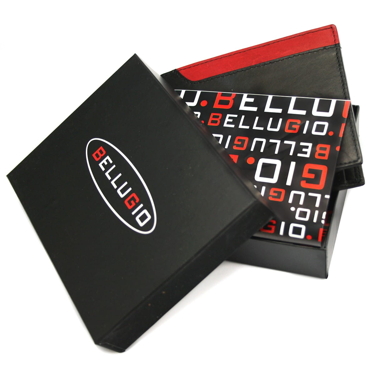 Portfel posiada tłoczone logo marki Bellugio® oraz oznaczenie potwierdzające wykonanie z naturalnej skóry. To klasyczny model, który świetnie sprawdzi się w codziennym użytkowaniu.