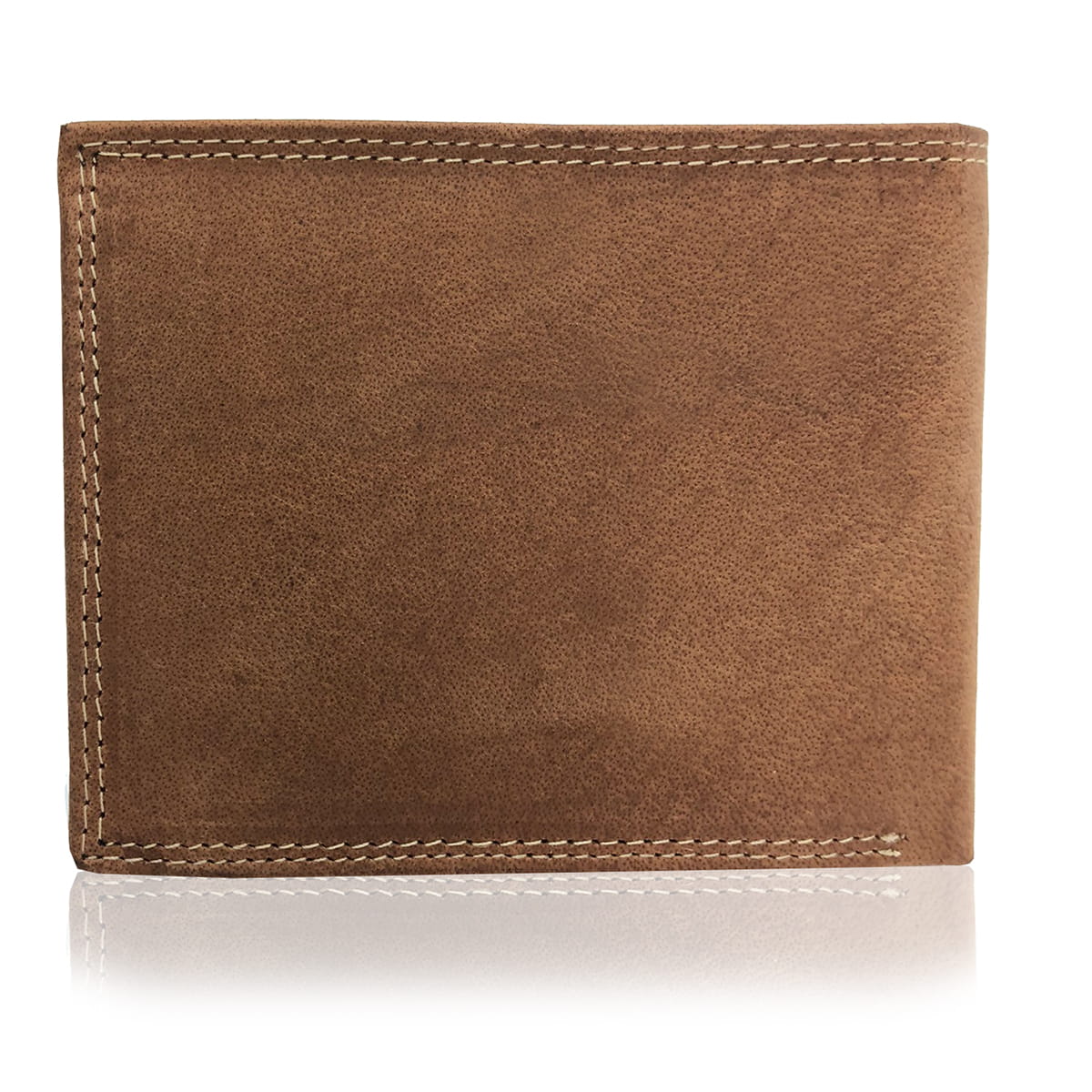 Portfel męski WILD TIGER to połączenie klasycznego stylu i funkcjonalności, wykonane z wysokiej jakości skóry nubukowej o miękkiej, przyjemnej w dotyku fakturze. Charakteru nadaje mu tłoczone logo na froncie oraz solidne, podwójne przeszycie, które podkreśla jego męski design.