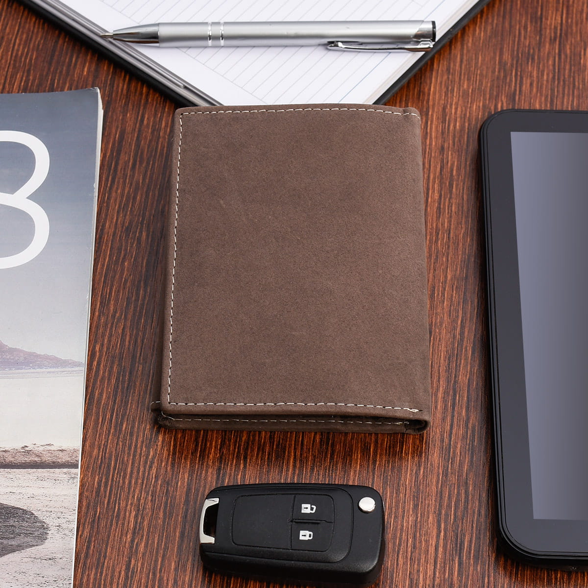 PORTFEL MĘSKI ZE SKÓRY NUBUK AM-28-072 - ciemnobrązowy