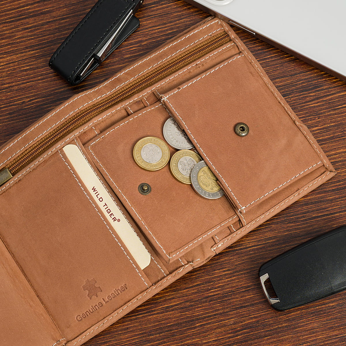 Naturalna skóra, staranne szycie oraz wysokiej jakości okucia gwarantują długowieczność i odporność na codzienne użytkowanie. Każdy portfel WILD TIGER to synonim solidności, męskiego charakteru i ponadczasowego stylu.