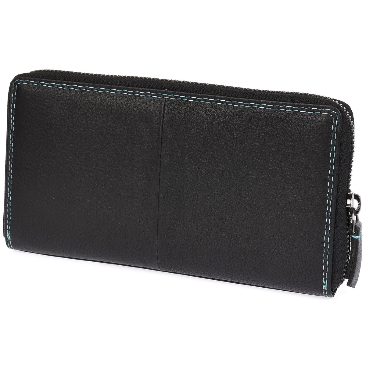 Całość została starannie obszyta ozdobną błękitną nicią, która subtelnie podkreśla unikalność tego projektu. Funkcjonalność idzie tu w parze z estetyką – portfel zapinany jest na zamek błyskawiczny, a jego wnętrze zaprojektowano z myślą o wygodnym i intuicyjnym użytkowaniu.