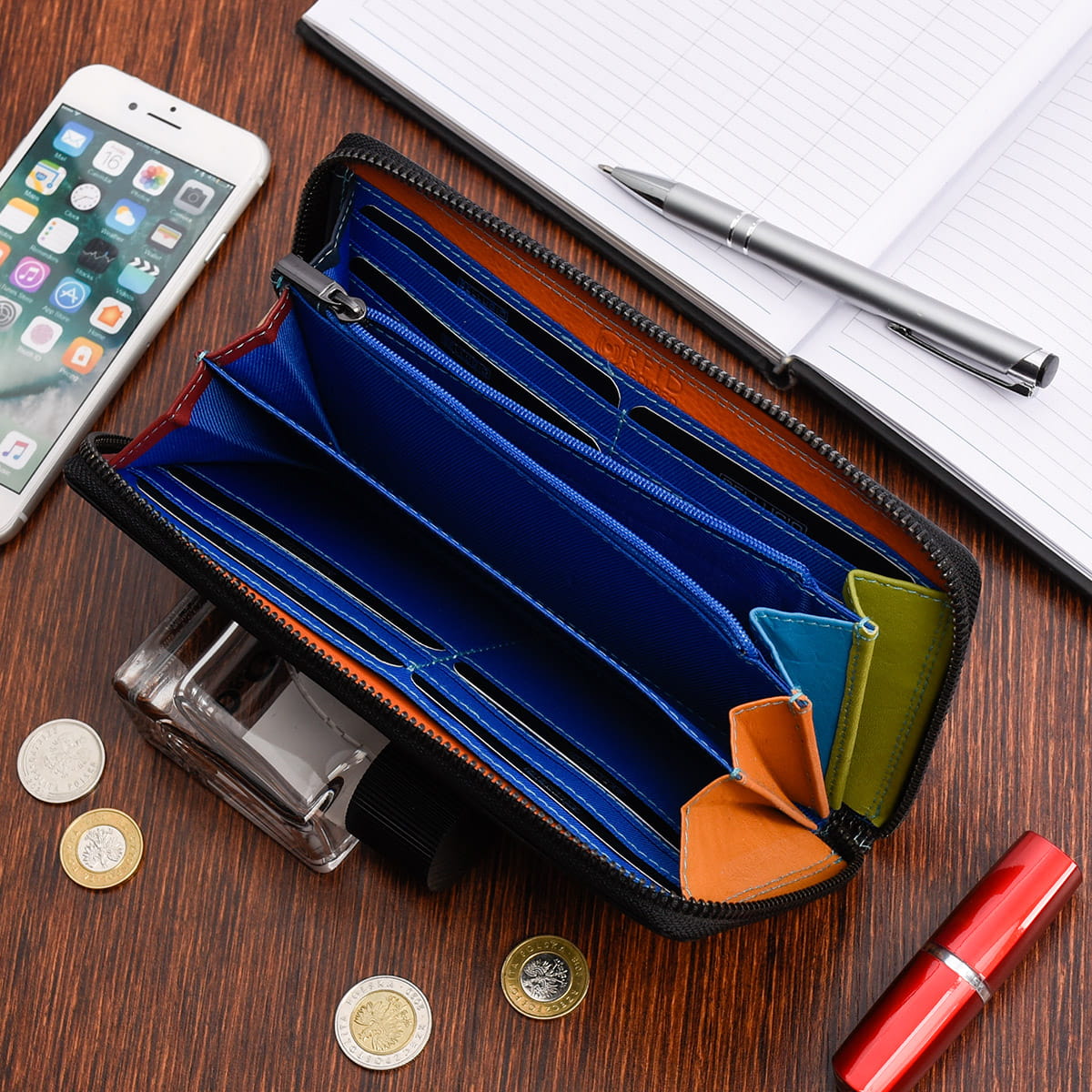 - Duża kieszeń na monety zapinana na suwak