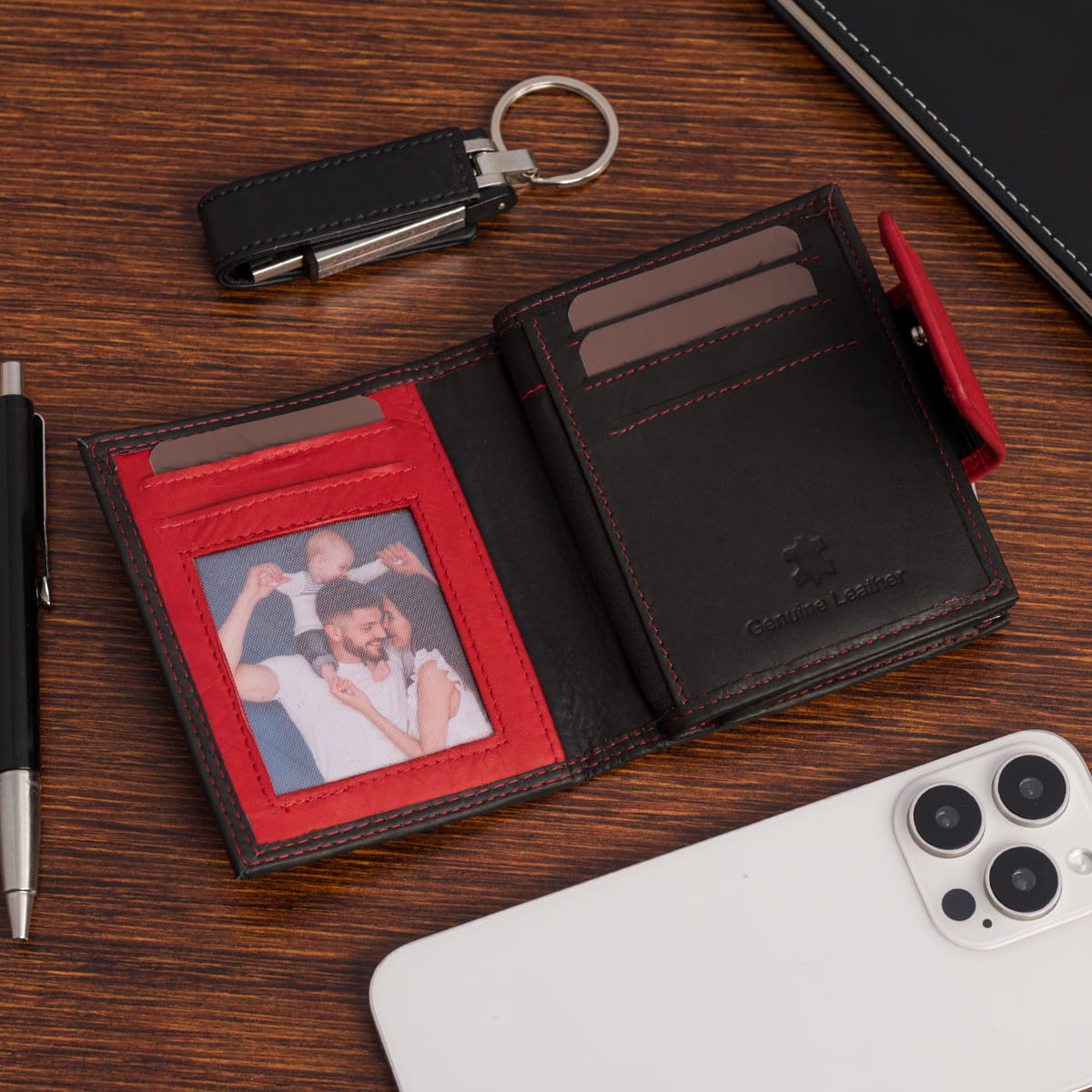 Model wykonano z wyjątkowo miękkiej i delikatnej skóry naturalnej, która jest przyjemna w dotyku i odporna na codzienne użytkowanie. Wnętrze zdobią tłoczenia potwierdzające autentyczność wykonania ze skóry naturalnej oraz zastosowanie zabezpieczenia RFID Secure, chroniącego dane z kart zbliżeniowych przed niepożądanym odczytem. Na froncie znajduje się elegancka srebrna blaszka z logo Bellugio®.