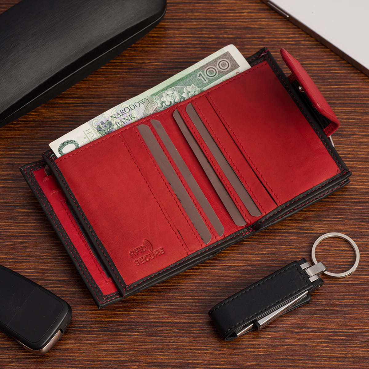 - 2 kieszenie na banknoty,