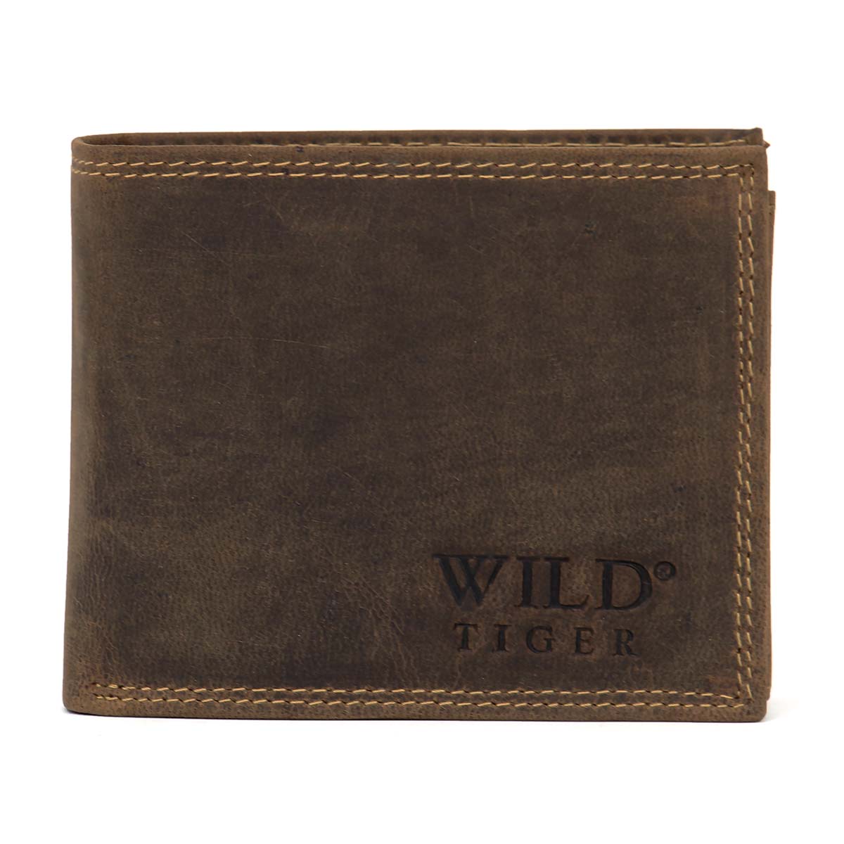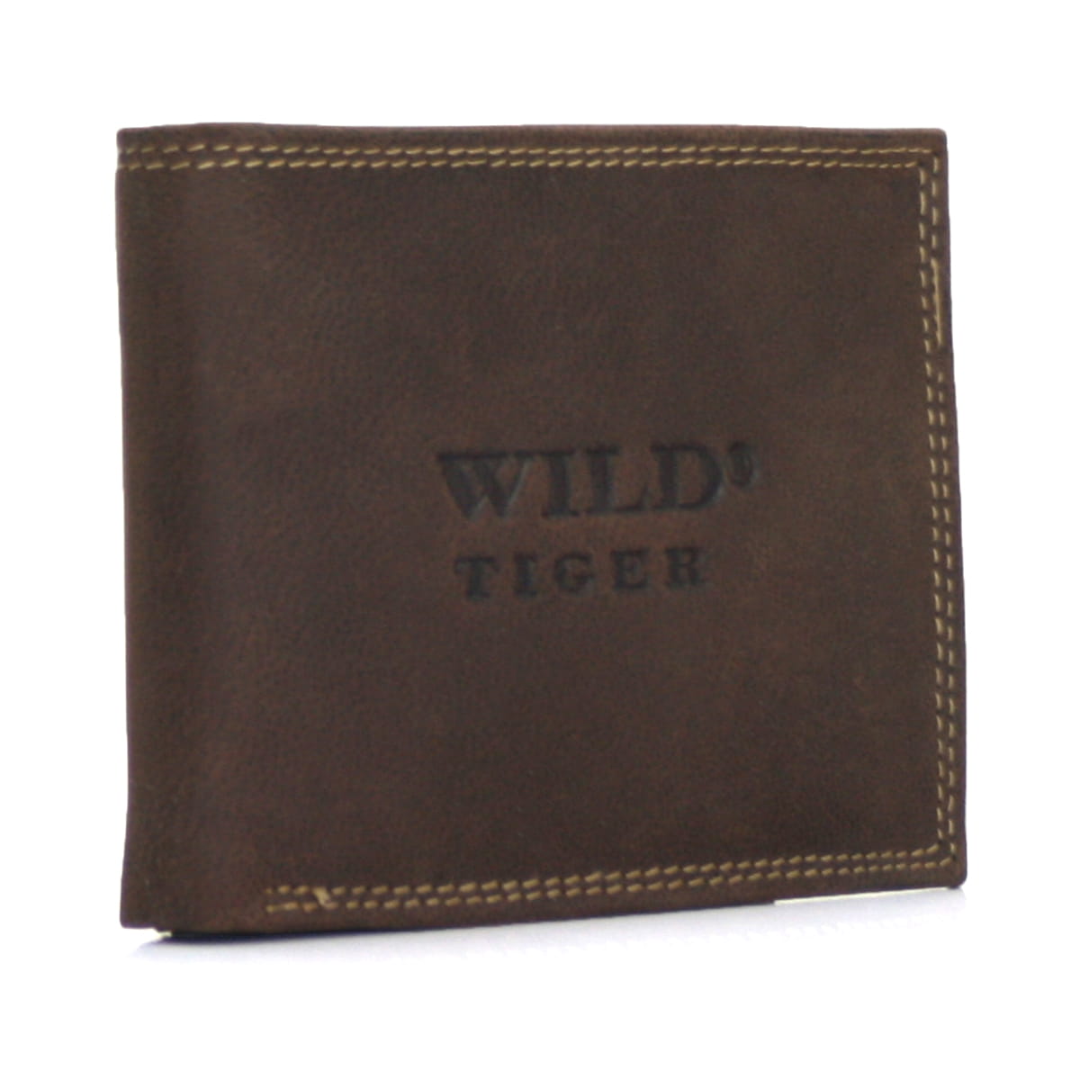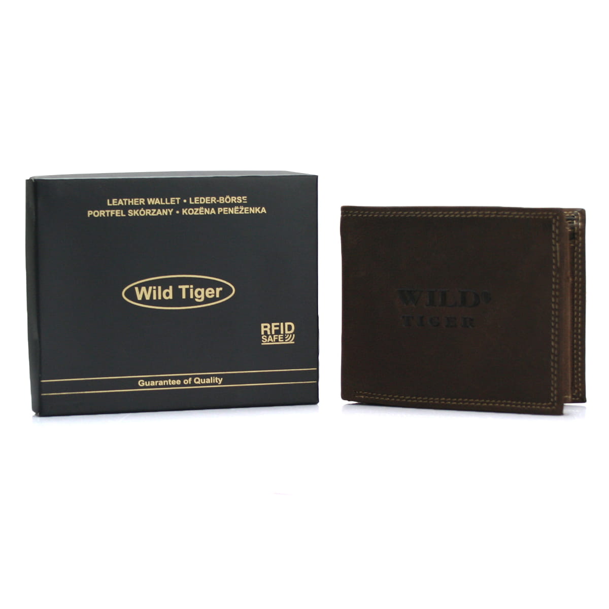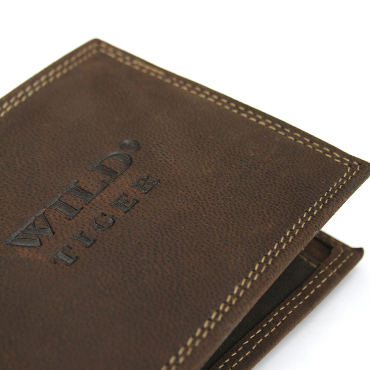 Portfel męski Wild Tiger wykonany z wysokiej jakoś naturalnej skóry nubukowej, która charakteryzuje się pomarszczoną strukturą oraz matowym połyskiem.