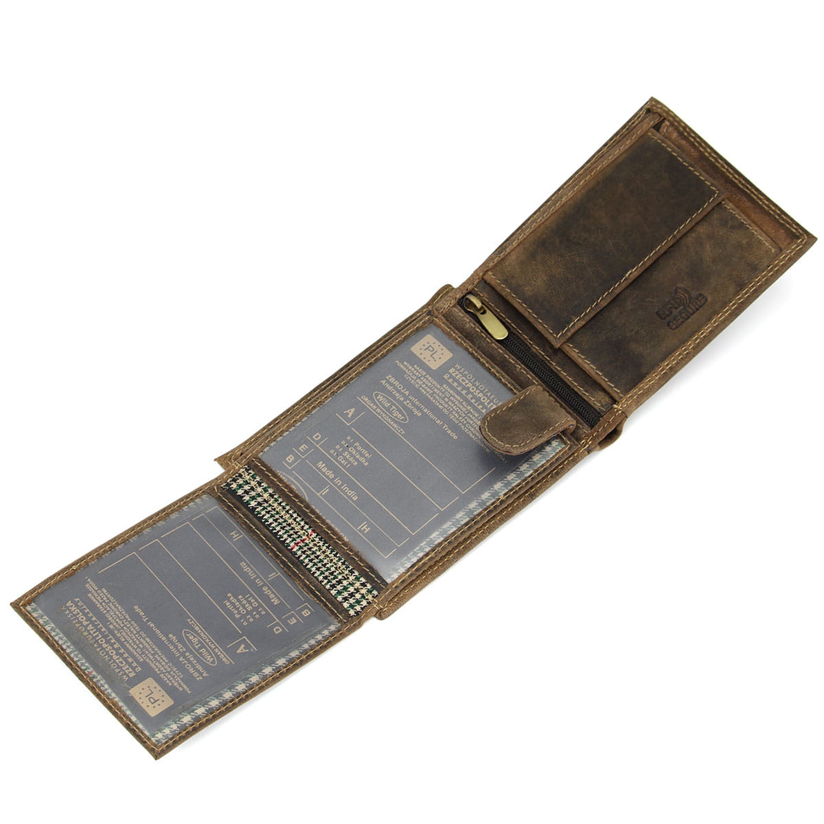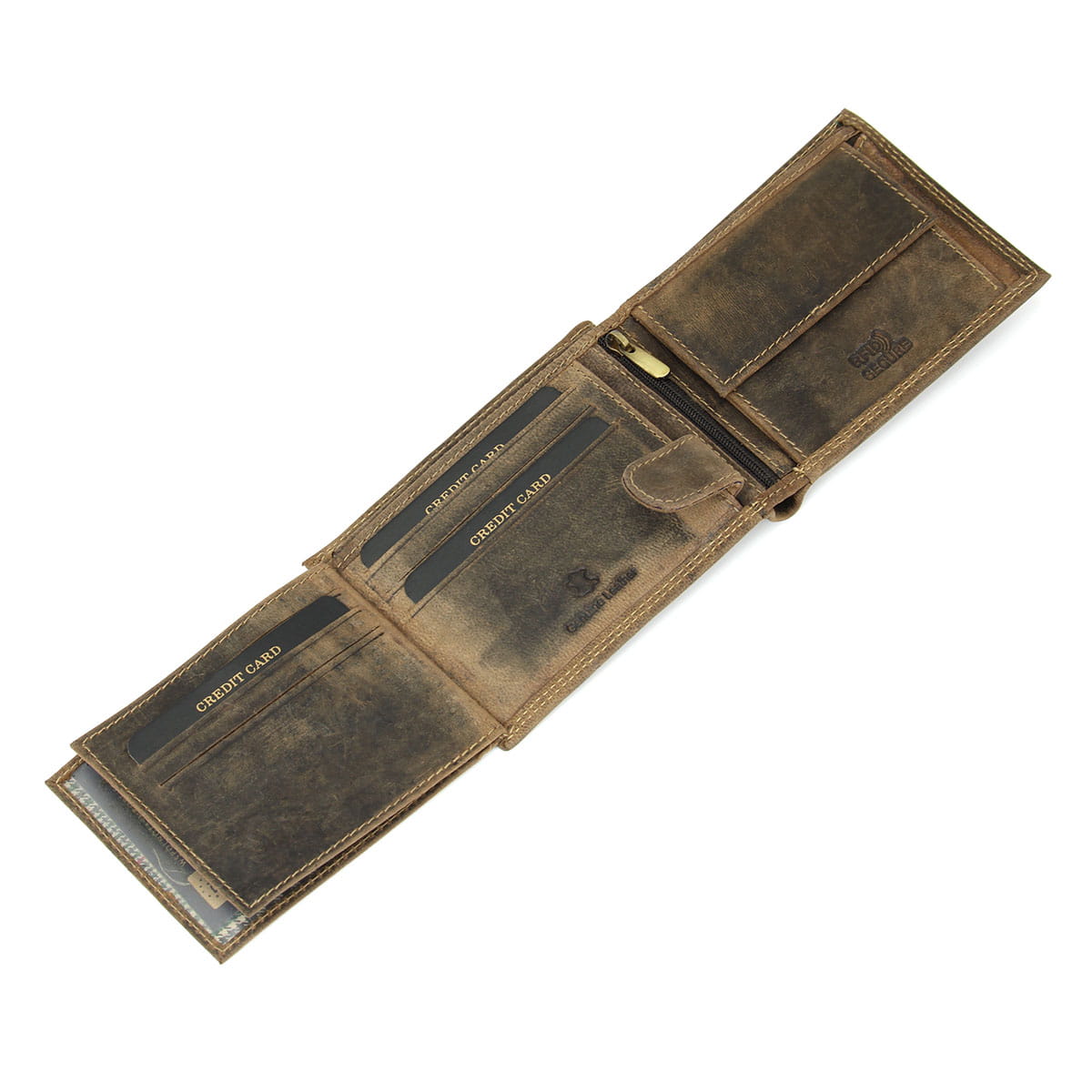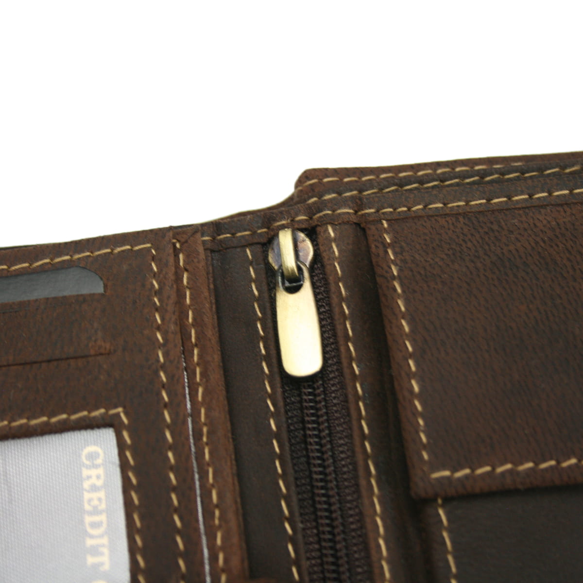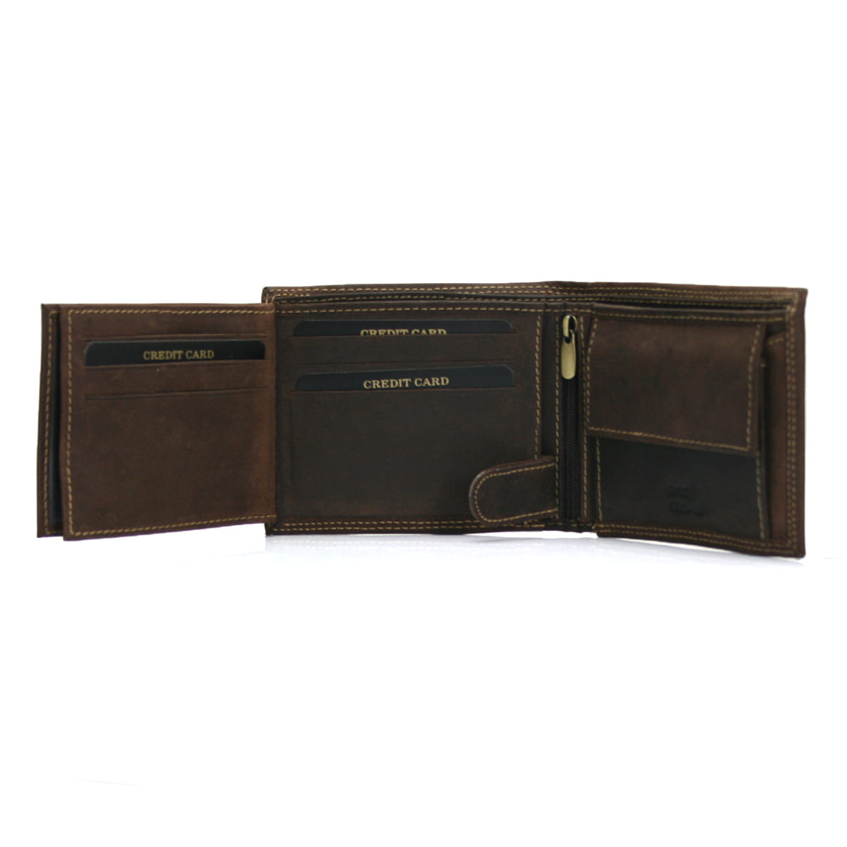 Portfel męski Wild Tiger wykonany z wysokiej jakoś naturalnej skóry nubukowej, która charakteryzuje się pomarszczoną strukturą oraz matowym połyskiem.