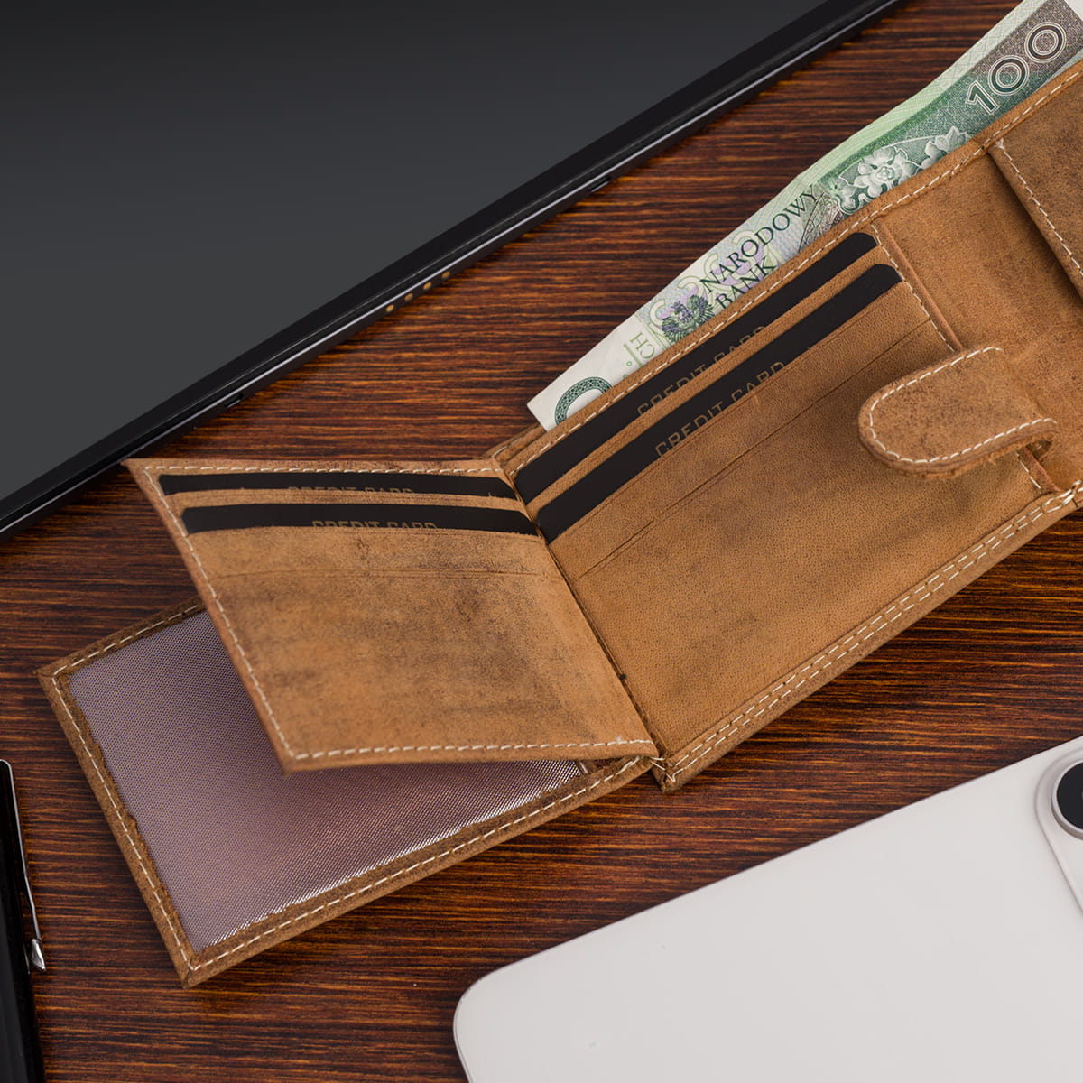 Wnętrze portfela obejmuje: