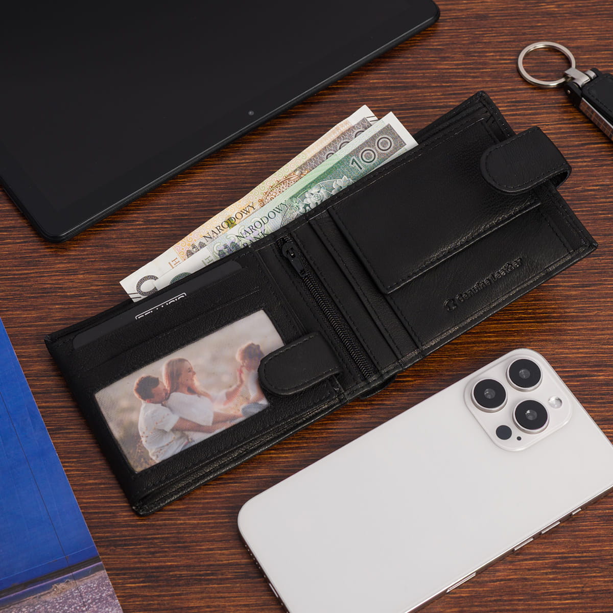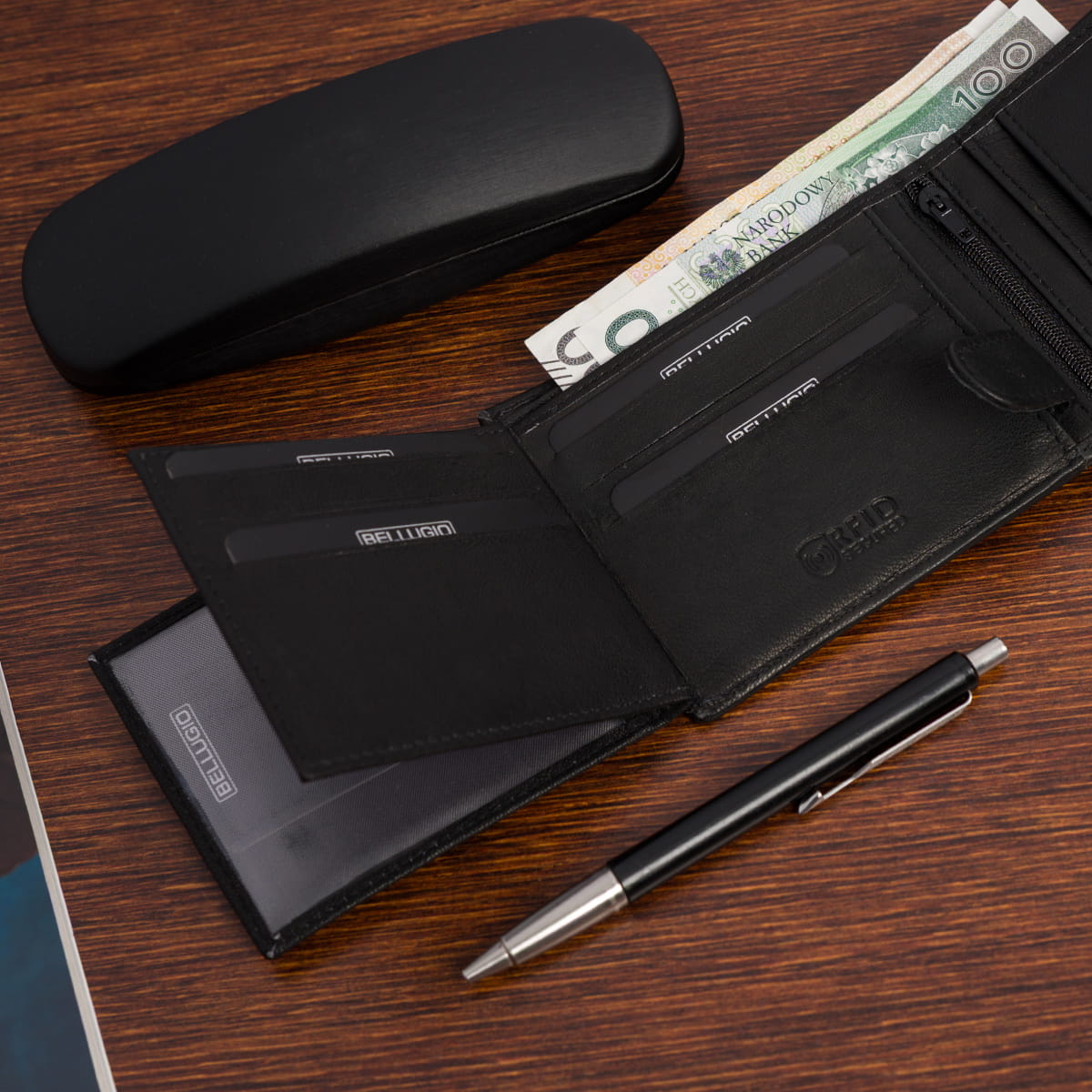 Portfel męski skórzany RIKI EM-144R-032Z - czarny
