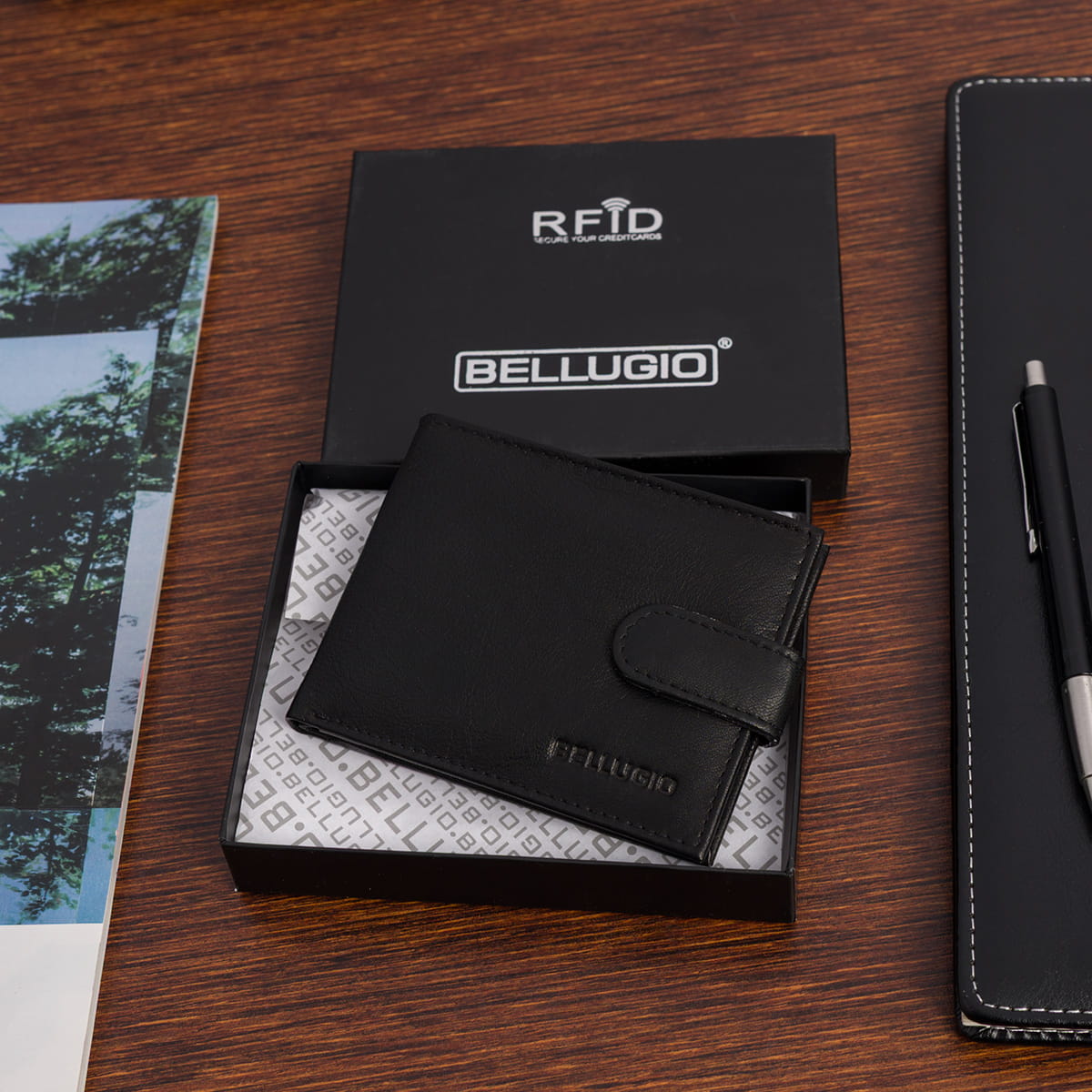 Całość zapakowana jest w eleganckie pudełko prezentowe z efektowną grafiką, dzięki czemu portfel Bellugio® to nie tylko praktyczny dodatek, ale również doskonały pomysł na prezent – symbol dobrego stylu, jakości i bezpieczeństwa.