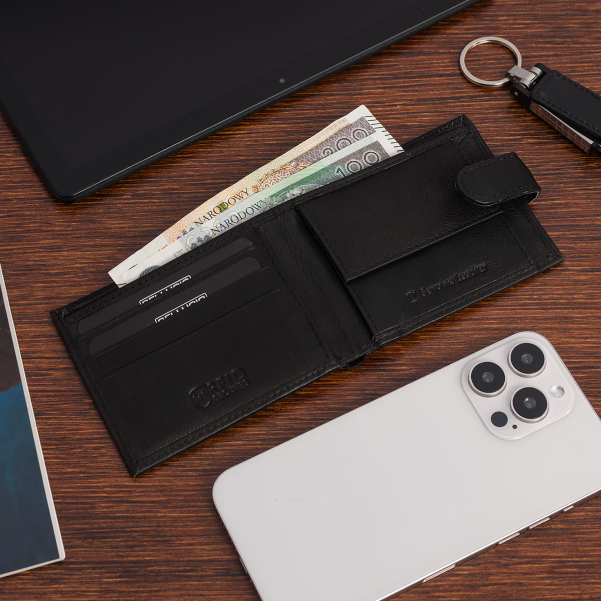 Portfel męski skórzany RIKI EM-144R-035N - czarny