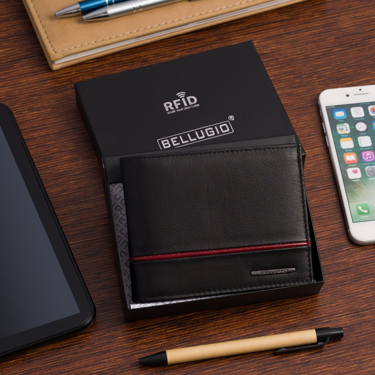 Portfel męski z lampasem Ellini TMM-80R-033 czarno - czerwony