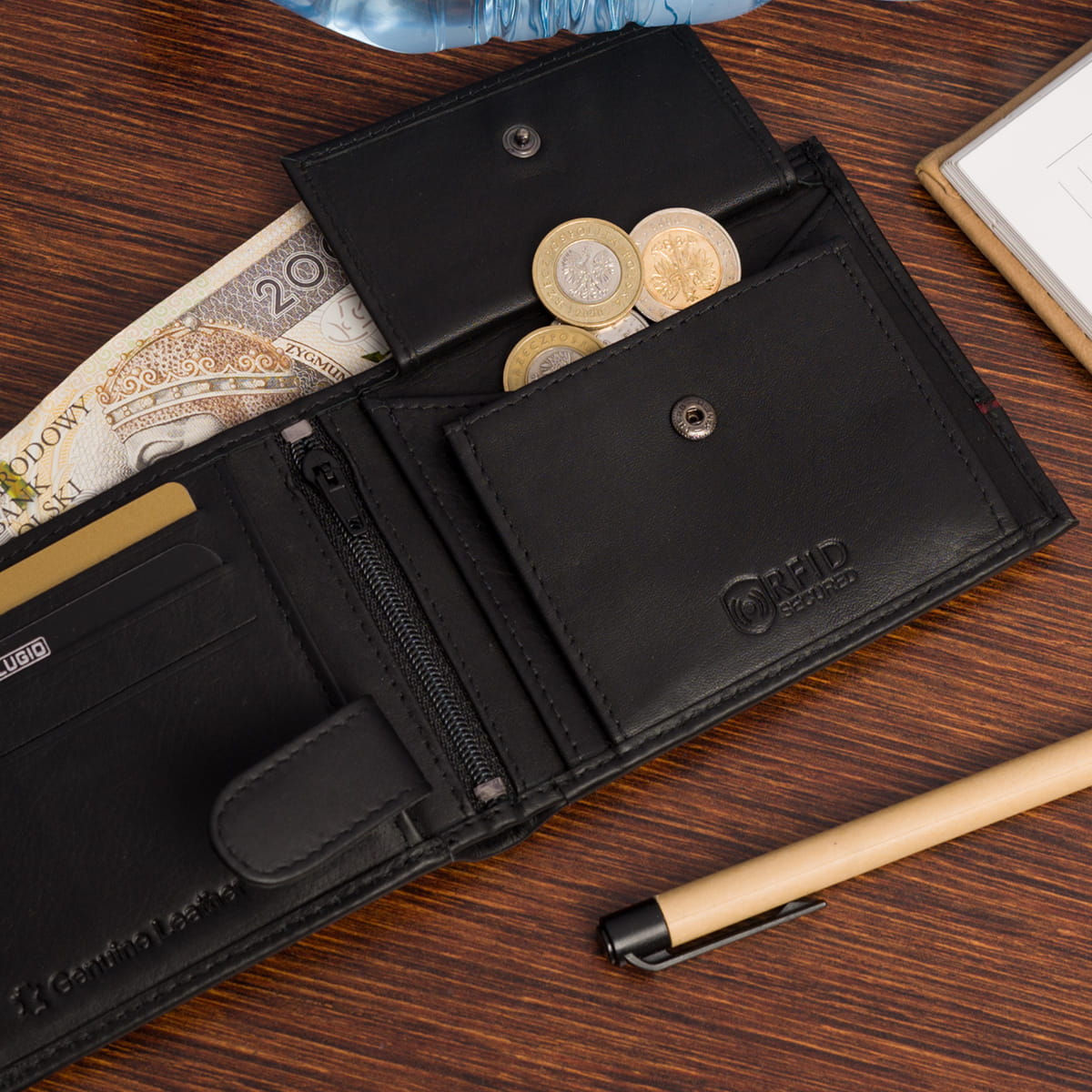 Portfel męski ze skóry sprawdzi się podczas spotkań z bliskimi, spotkań biznesowych, eleganckich przyjęciach.