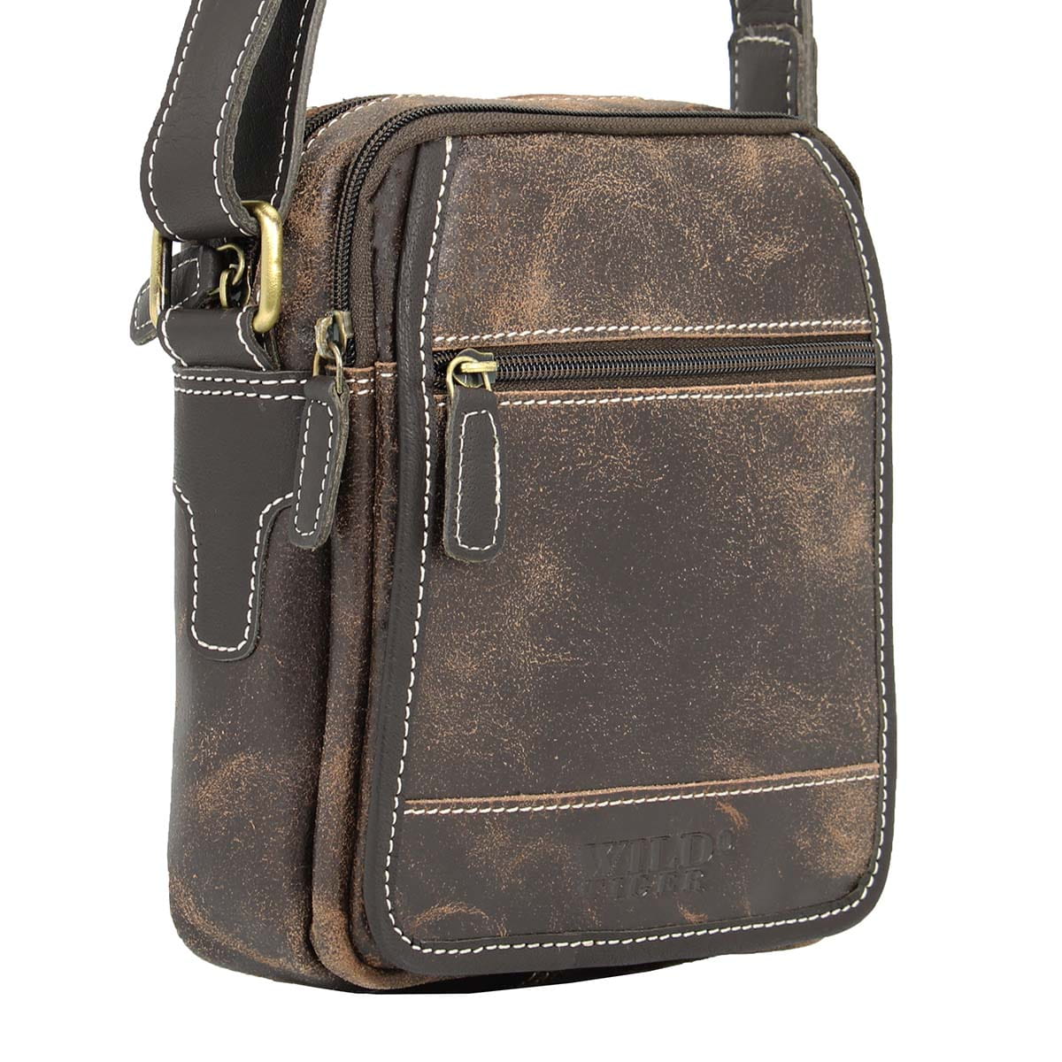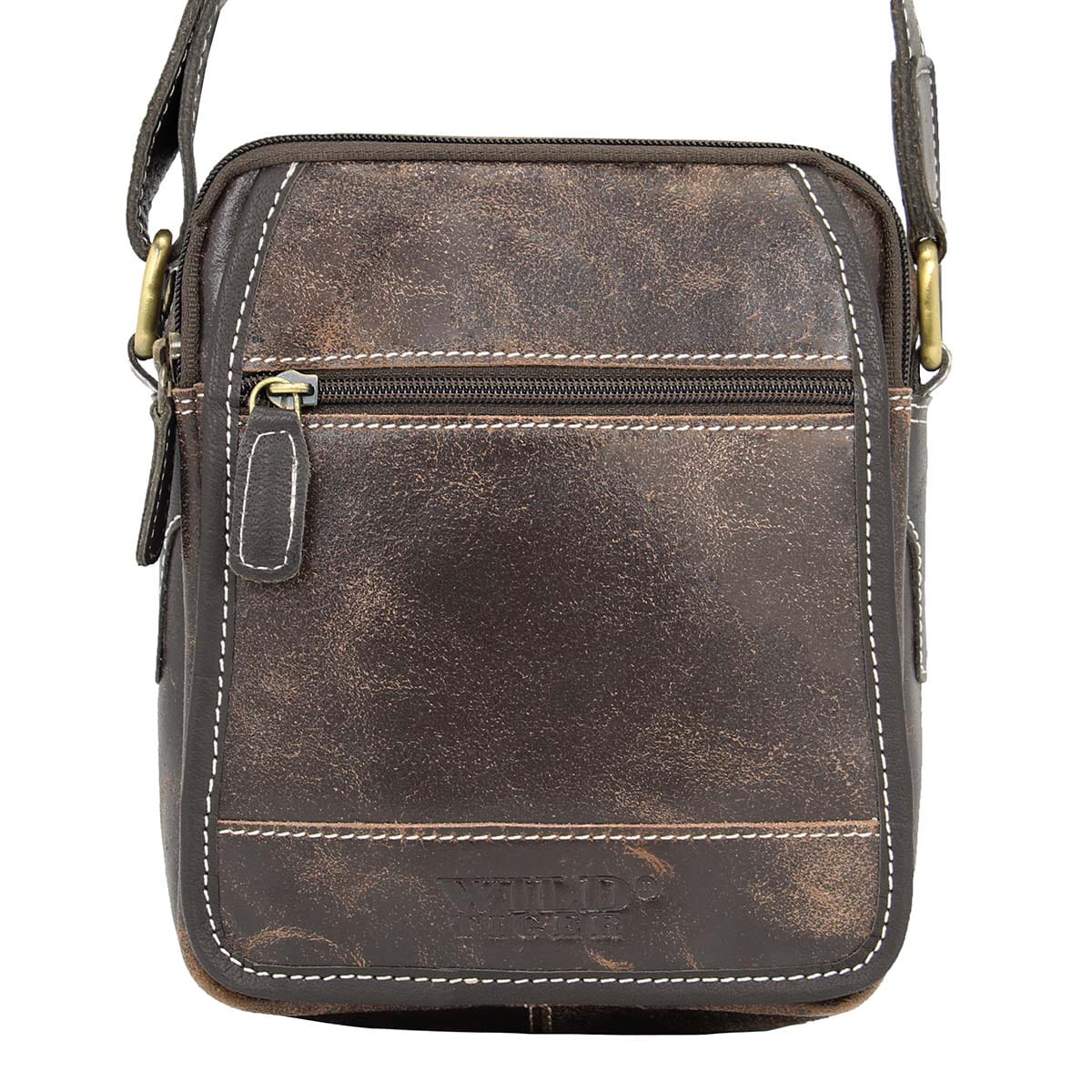Skórzana listonoszka męska WILD TIGER TBM-99-662 - brązowa