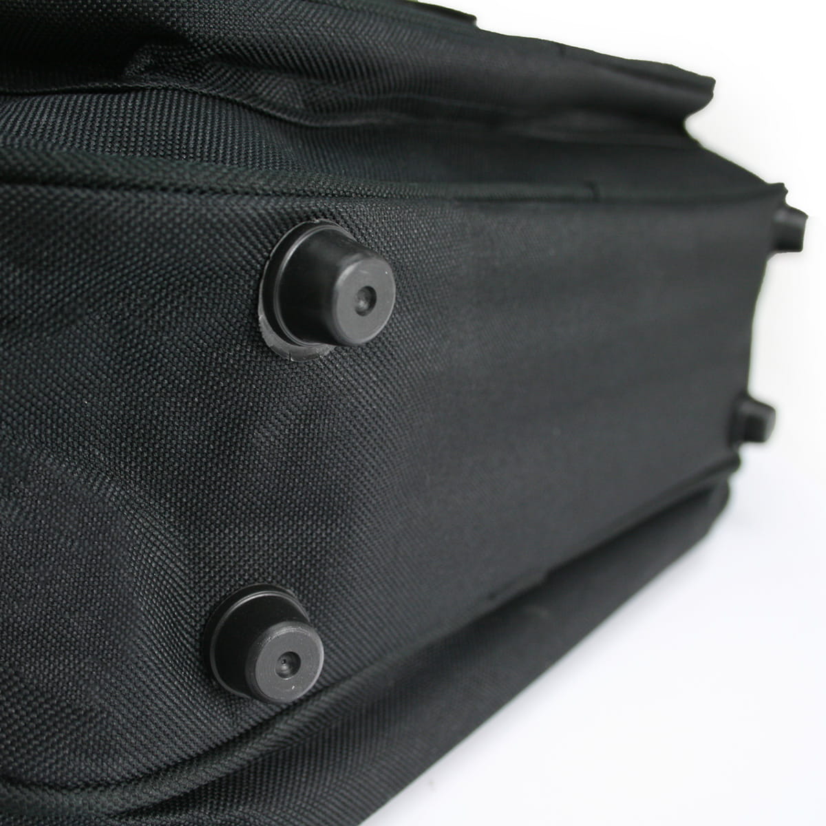 Dodatkowo torba posiada cztery plastikowe nóżki na spodzie, które chronią ją przed zabrudzeniem i wilgocią. Całość wykończono wodoodpornym materiałem, który skutecznie zabezpiecza zawartość przed zamoknięciem.