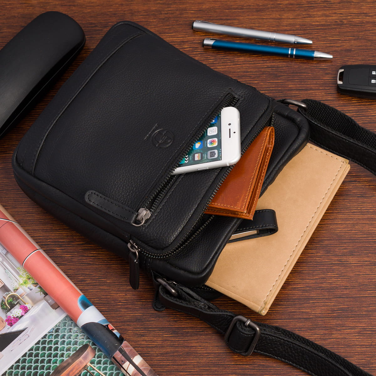 Skórzana saszetka Bellugio® z luksusowej serii AMADEO to niezwykle wygodny i elegancki sposób na to, by najbardziej potrzebne rzeczy mieć zawsze pod ręką. Model AMADEO VI jest reprezentantem klasycznego fasonu z dodatkową, głębszą kieszonką na froncie.