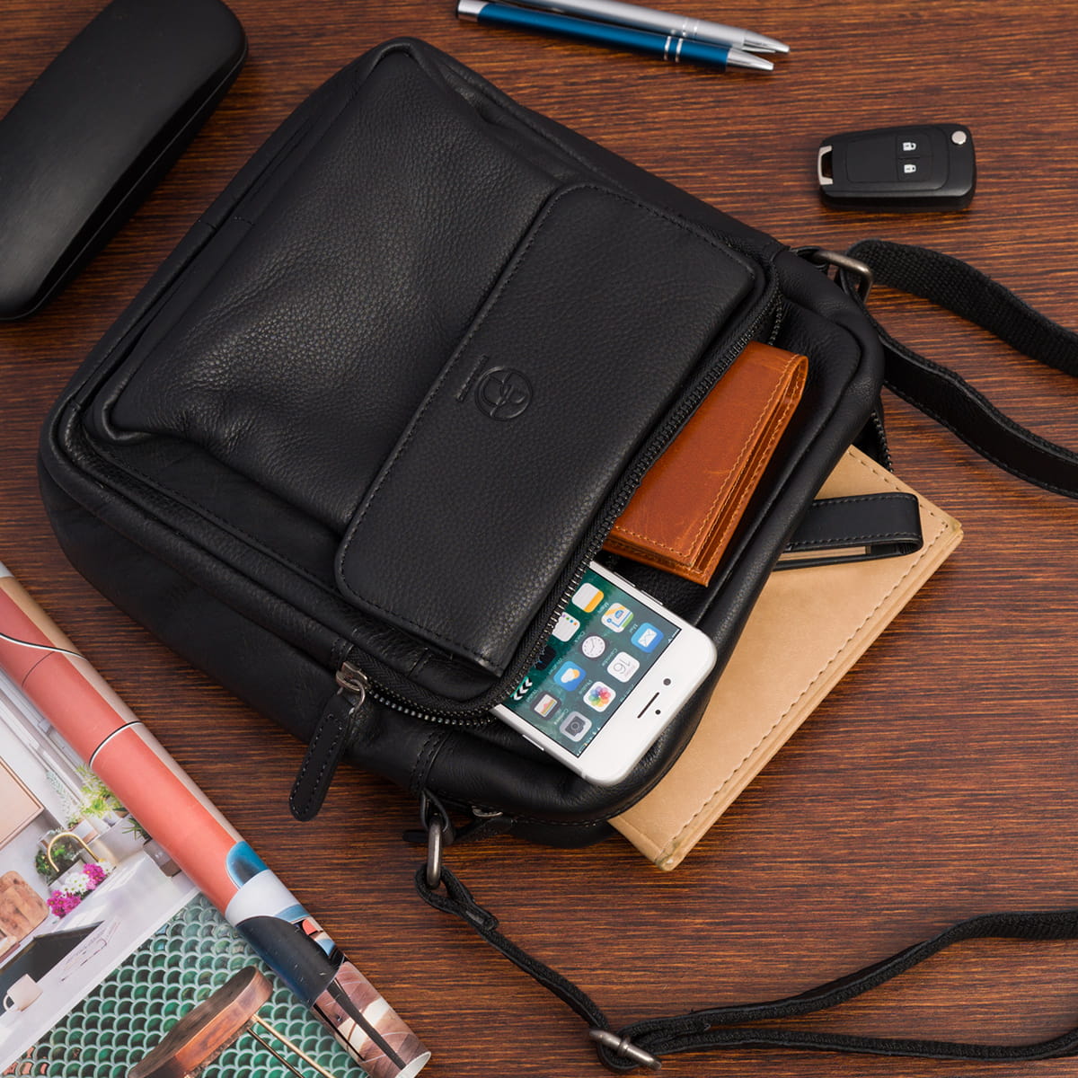 Skórzana saszetka Bellugio® z luksusowej serii AMADEO to niezwykle wygodny i elegancki sposób na to, by najbardziej potrzebne rzeczy mieć zawsze pod ręką. AMADEO VIII to większy, klasyczny model, któremu charakteru vintage nadaje kieszonka z klapką na froncie.